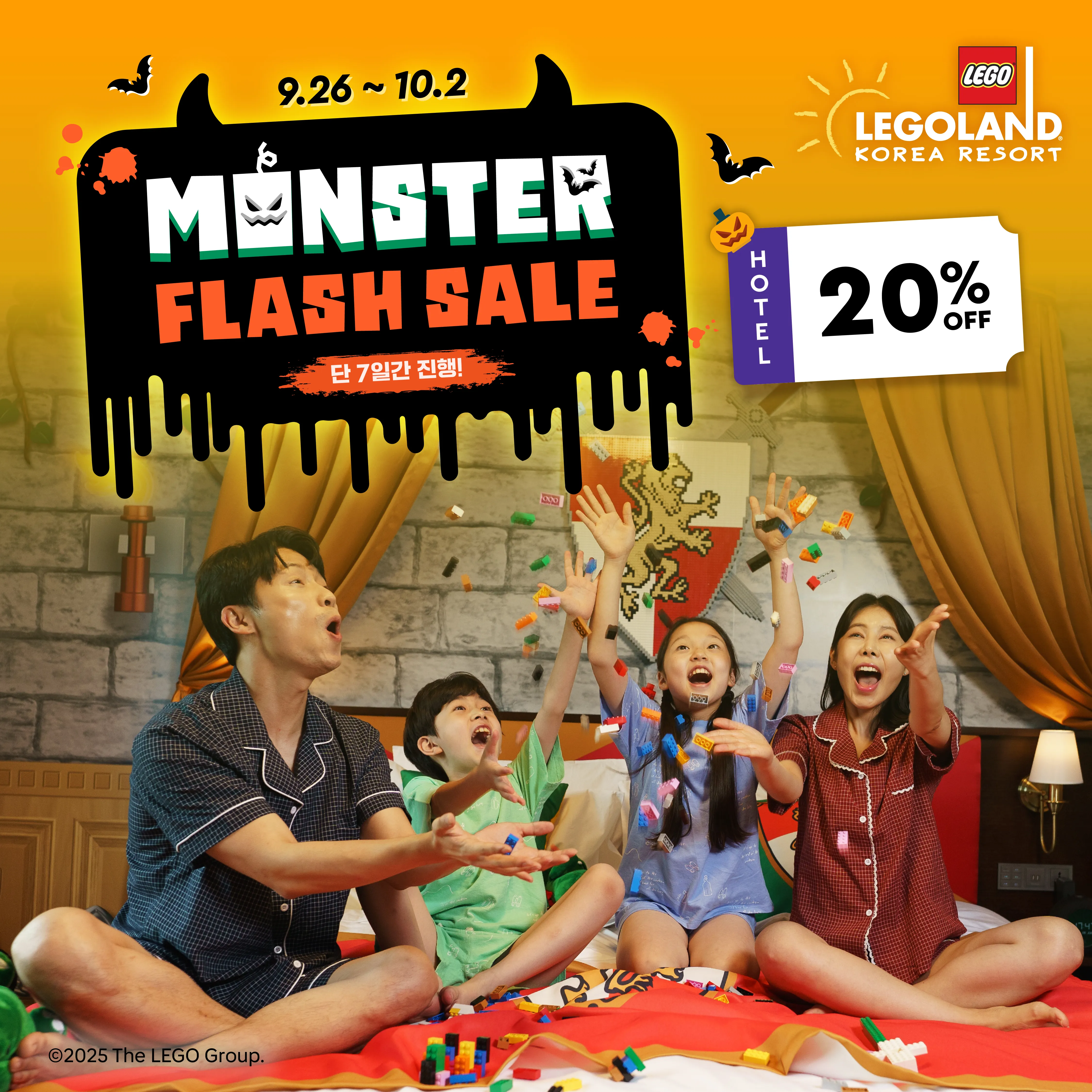 올가을, LEGOLAND® 호텔에서 잊지 못할 몬스터 모험을 시작하세요! 몬스터 캐슬로 변신한 파크와 호텔을 자유롭게 오가며, 오싹하고 달콤한 가을의 추억을 만들 수 있는 완벽한 여행입니다.