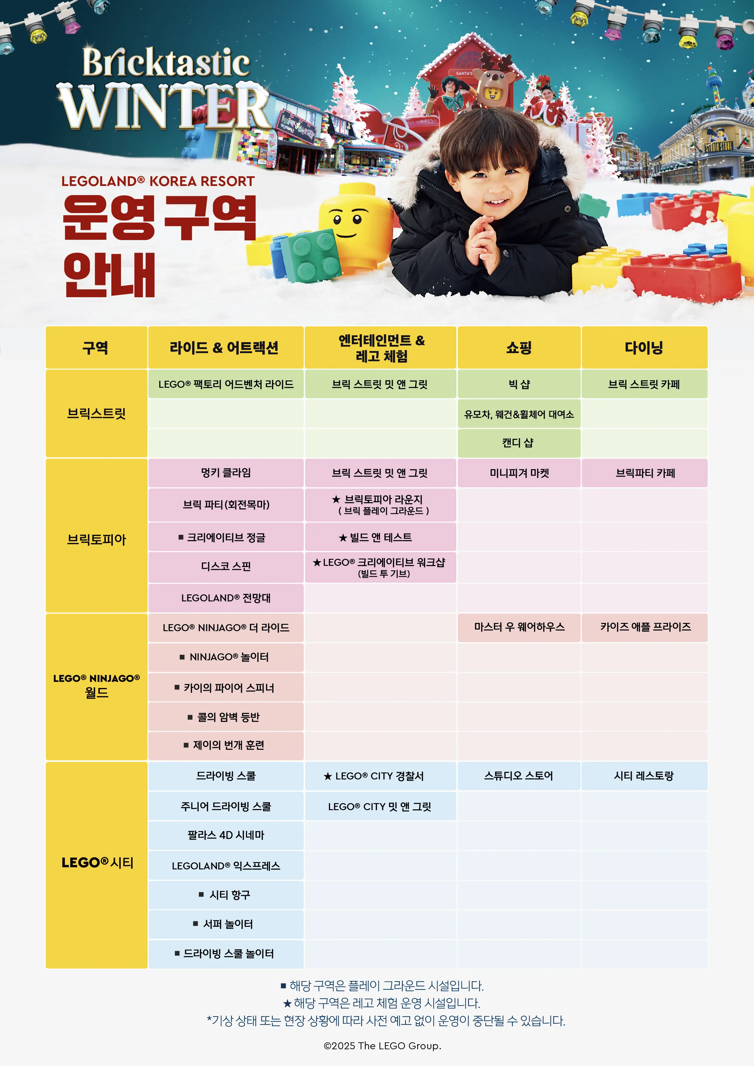 동절기 운영 제한: 동절기 기간 동안 일부 테마구역, 라이드, 어트랙션의 이용이 제한될 수 있으며, 구매 전 이용 가능한 시설 및 이벤트 내용을 반드시 확인해 주십시오.